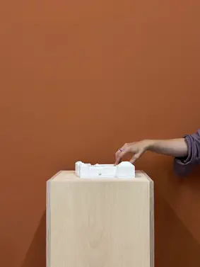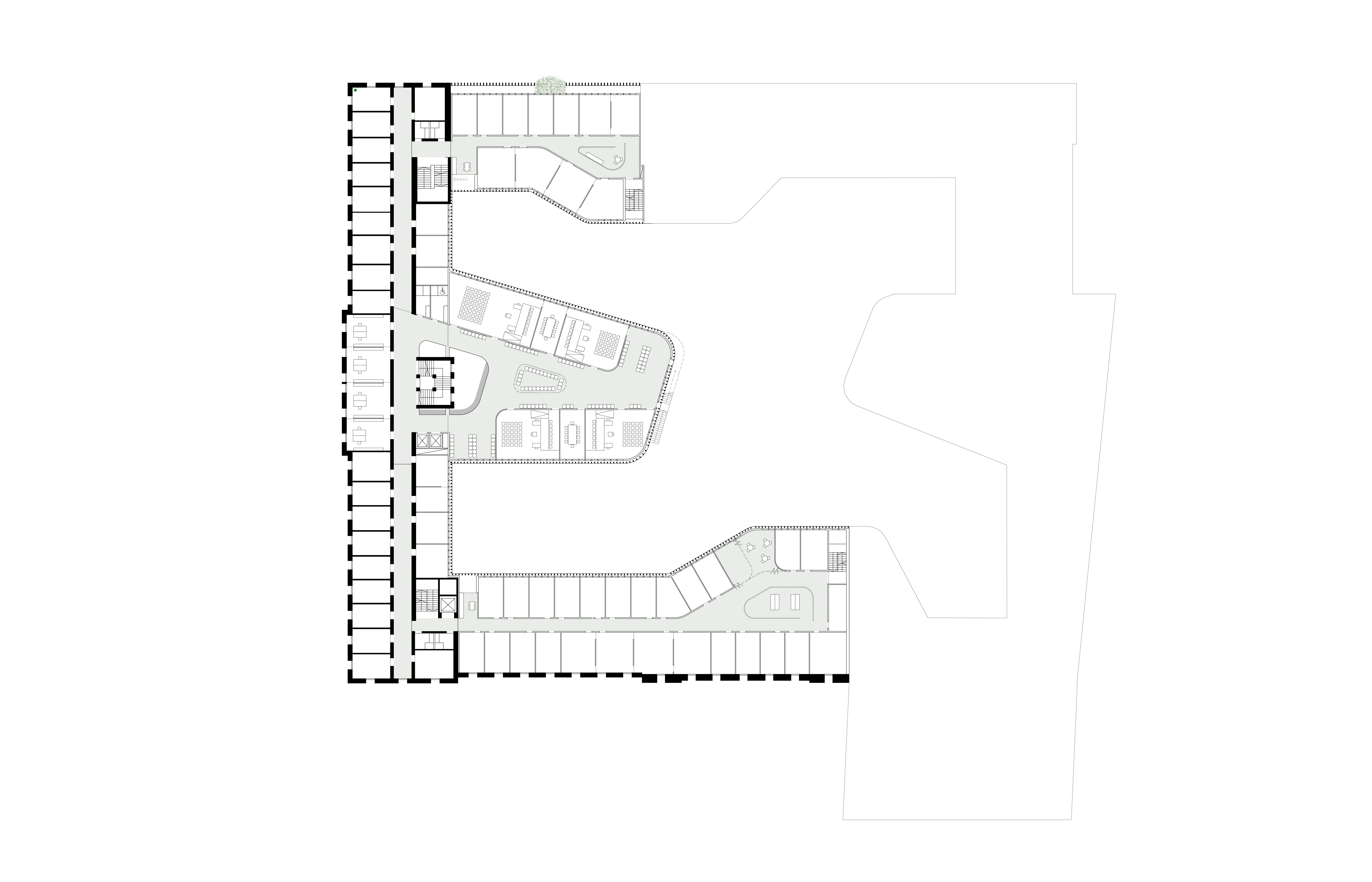 Die Idee eines fließenden Innenraums steht im Zentrum unseres Entwurfs. Die dynamische, flexible Formensprache wird durch die Materialwahl unterstützt, wobei die keramische Fassade als zentrales Gestaltungselement fungiert. Sie schützt vor Sonne, bewahrt die Privatsphäre und dämpft gleichzeitig den Verkehrslärm – eine perfekte Balance zwischen Funktionalität und Ästhetik.