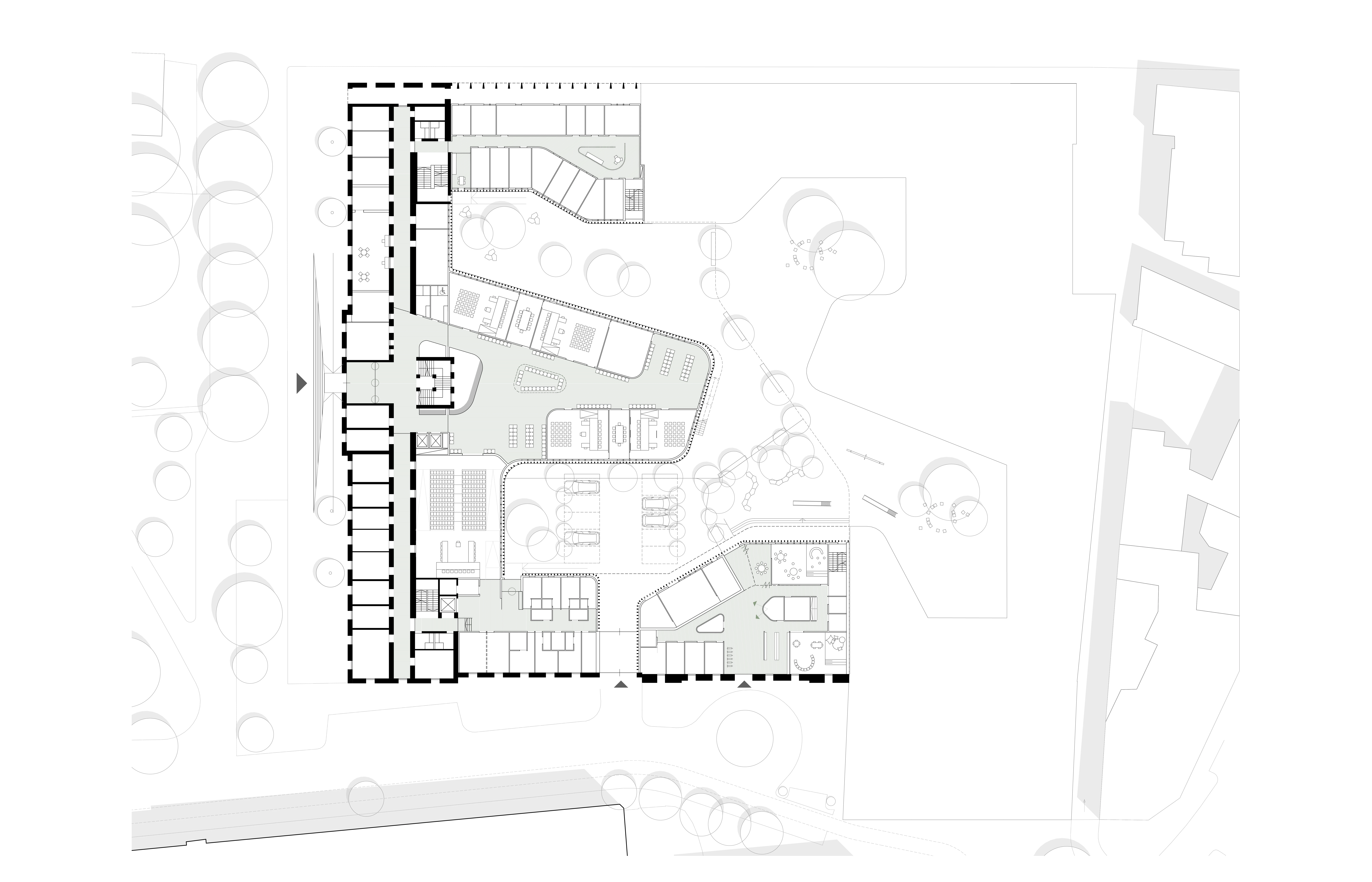 Inmitten der historischen Architektur entstand die Vision eines Gebäudes, das sich wie ein lebendiger Organismus an seine Umgebung schmiegt. Mit fließenden Formen und einer eleganten keramischen Haut aus filigranen Lamellen wird nicht nur die Privatsphäre gewahrt, sondern auch ein effektiver Sonnenschutz geschaffen. Diese einzigartige Fassade, die sich in sanften Kurven zur Straße hin öffnet, verschmilzt harmonisch mit der grünen Natur und dämpft zugleich den Lärm der Stadt. Durch die geschickte Auswahl nachhaltiger Materialien und einer modernen, doch respektvollen Gestaltung entsteht ein Gebäude, das Vergangenheit und Zukunft in perfektem Einklang vereint.