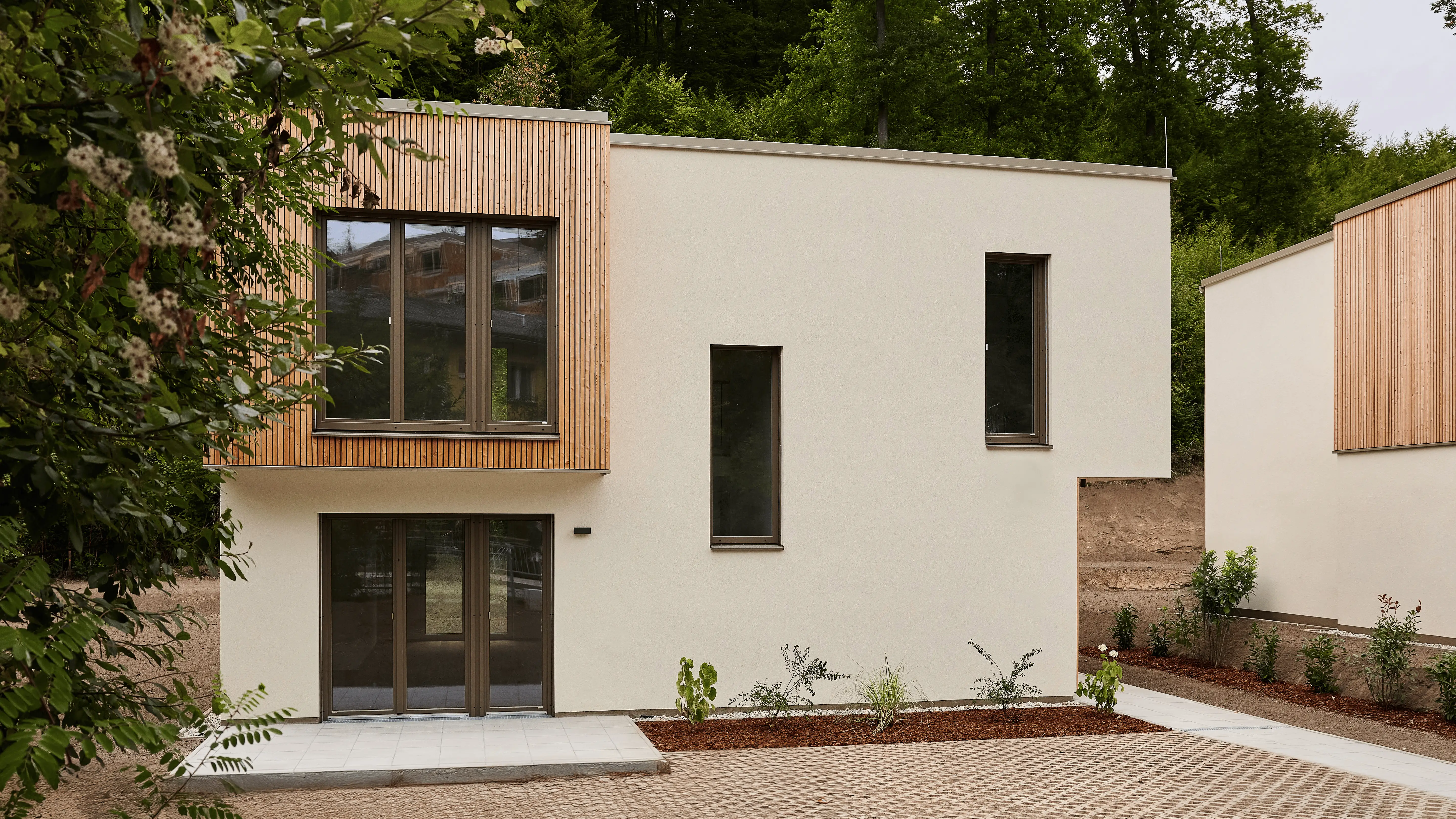 Am Eingang zur traditionsreichen Sagbergsiedlung in Purkersdorf entstehen vier präzise gesetzte Einfamilienhäuser, die durch klare Volumina, moderne Formensprache und sensible Einbettung in die topografische Struktur des Wienerwalds überzeugen. Die Architektur sucht nicht den Kontrast zur Umgebung, sondern deren Weiterführung – mit sorgfältig gesetzten Proportionen, reduzierten Materialien und einer starken Beziehung zum Außenraum.