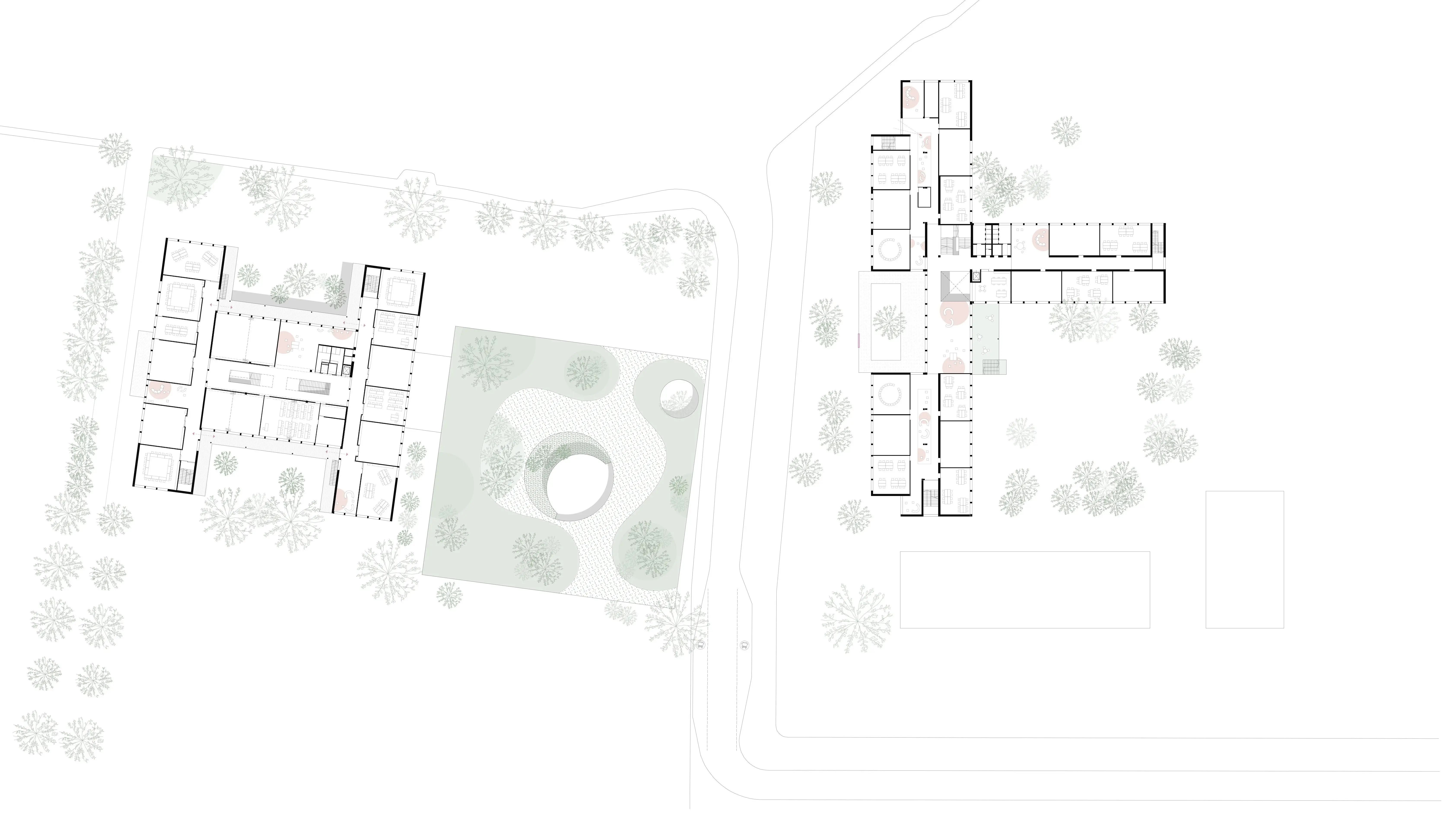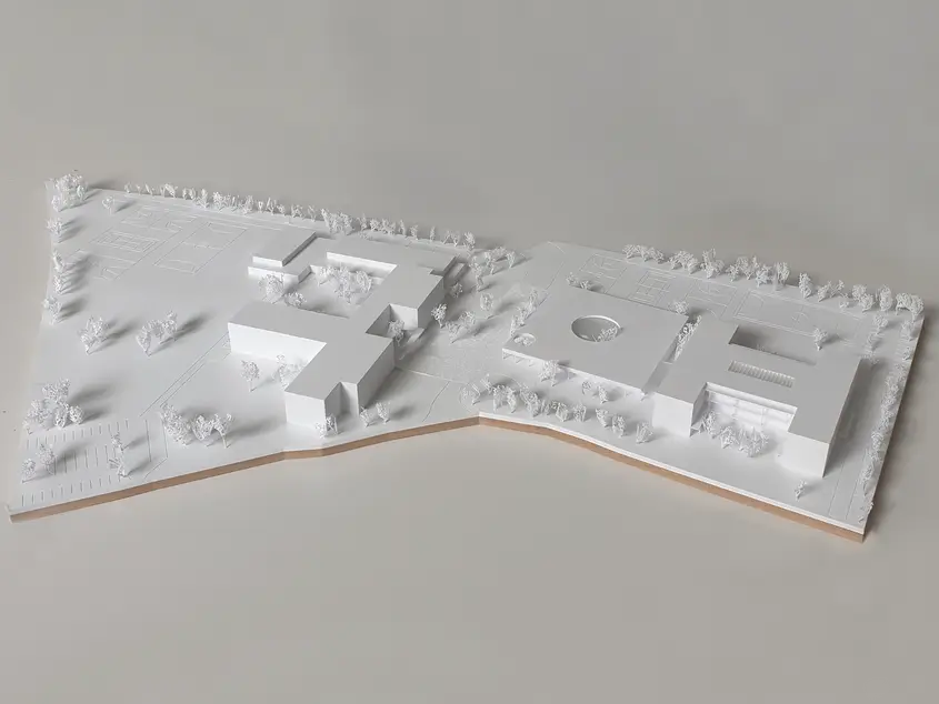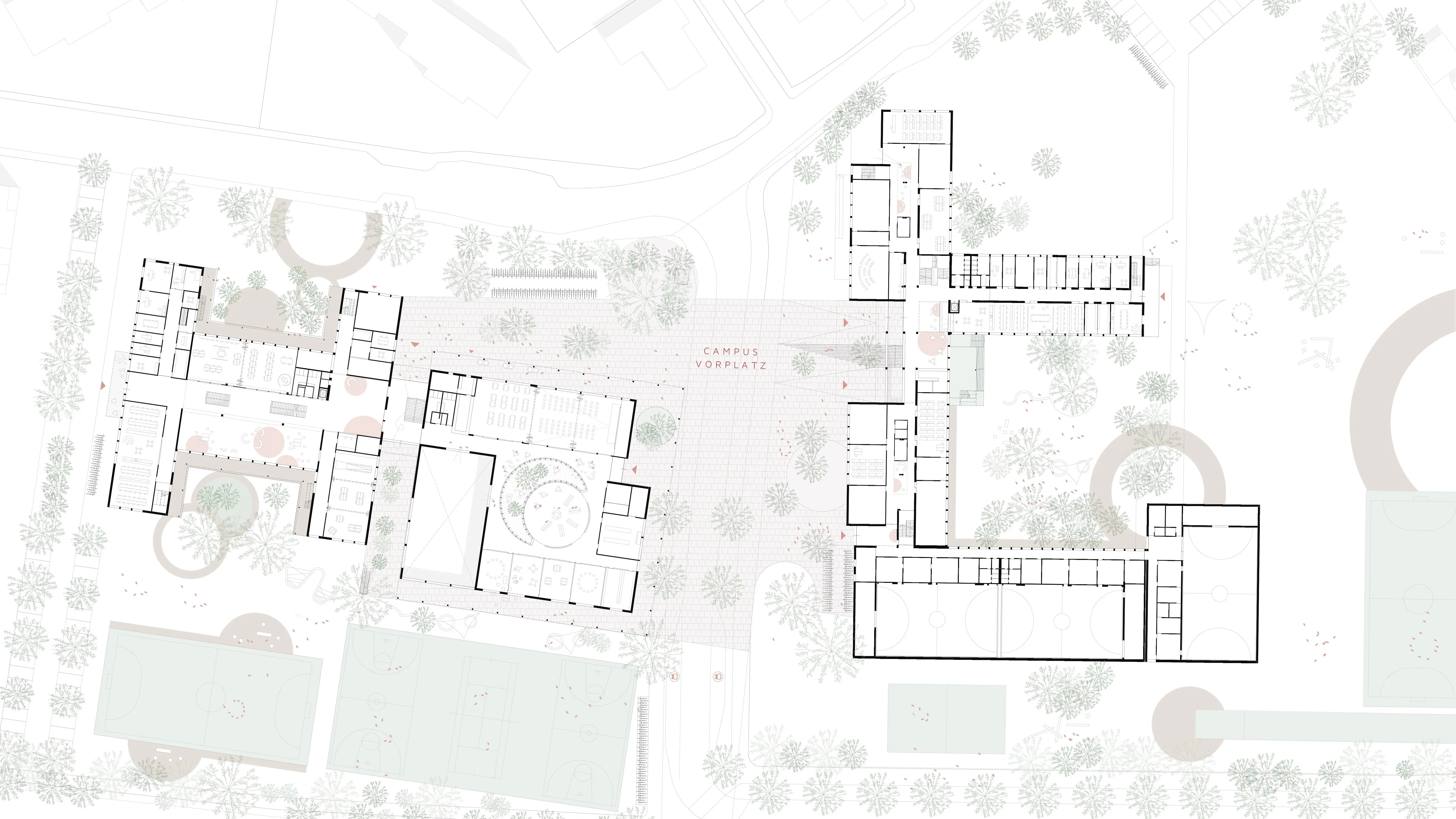 Die Gebäude kommunizieren untereinander – nicht durch Lautstärke, sondern durch Maßstäblichkeit, Orientierung und Beziehung im Raum. Jeder Baukörper bewahrt seine Identität, doch gemeinsam entsteht ein fein orchestrierter Resonanzraum für Lernen, Bewegung und Begegnung.